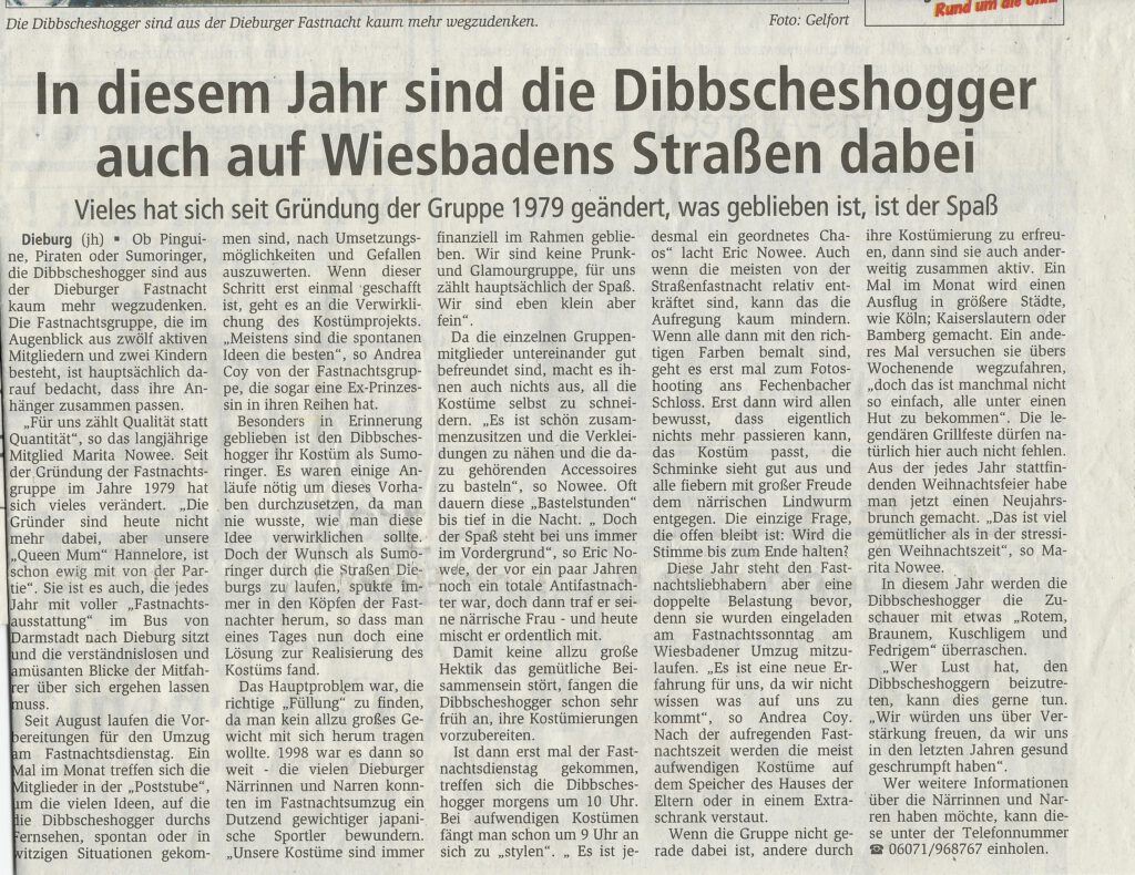 Ein Bericht im Dieburger Anzeiger zu unserer wiederholten Teilnahme an dem Fastnachtsumzug in Wiesbaden.
